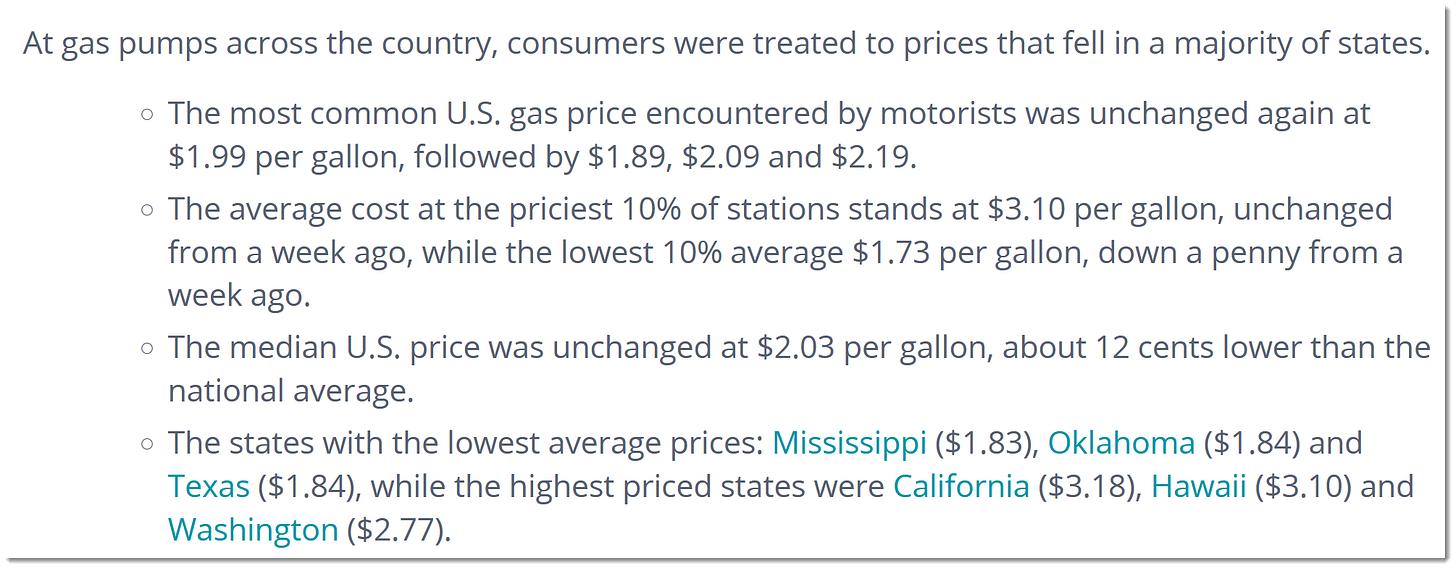 By the last half of 2020, the stock market and the GDP, both of which suffered in the first half of 2020 due to Covid lockdowns, recovered after a temporary sharp dip. In October 2020 gas was $2.15 and diesel was $2.36 on average.