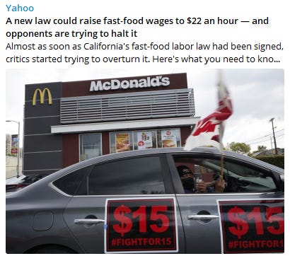 The summer of 2021 saw millions of people choose to leave the workforce over vaccine and mask mandates. Demand for employees increased dramatically and the cost of hiring began to rise rapidly with the workforce demanding higher pay. Fast food restaurants competing with one another offered unheard of hourly wages just to bring in staff. Having to pay staff higher hourly wages means consumers will likely pay in the end. And now, California law AB 257 could raise the minimum wage for franchise restaurant workers up to $22 per hour!